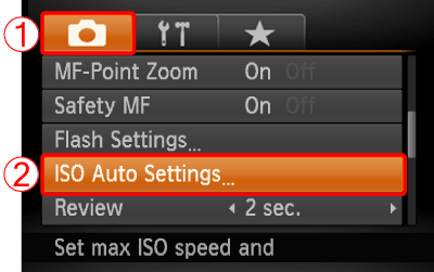 Also, with [ISO AUTO] () selected, you can set the maximum ISO speed, or select the rate of change.