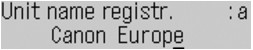 Here describes the procedure to enter the unit name as example. To display the Unit name registr. screen, see Registering User Information.