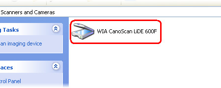 In [Scanners and Cameras], the scanner currently connected to the computer is displayed as an icon.