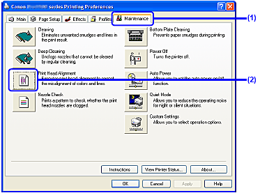 (1) Click Print Head Alignment in the Maintenance tab.