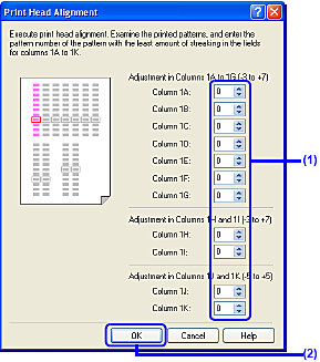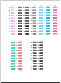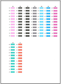 If it is difficult to pick the best pattern each from Columns 1J and 1K, pick the setting that produces the least noticeable vertical white stripes.