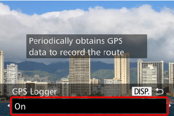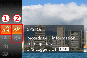 (On) status, you can record and check the location information (latitude, longitude, elevation) and the shooting date/time in your images and movies.
