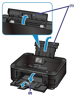 (2) Open the Paper Output Tray gently, and open the Output Tray Extension.