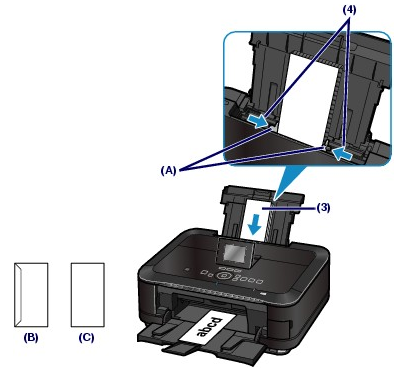 (4) Slide the Paper Guides (A) to align them with both sides of the envelopes.