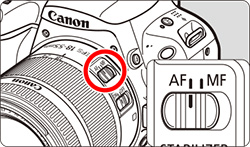 If the attached lens has an Image Stabilizer and you set the Image Stabilizer (IS) switch to ⋖ON⋗, the Image Stabilizer will operate at all times even if you do not press the shutter button halfway. The Image Stabilizer consumes battery power and may shorten the total movie shooting time depending on the shooting conditions. When the Image Stabilizer is not necessary, such as when using a tripod, it is recommended that you set the IS switch to ⋖OFF⋗.