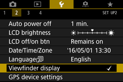 4. Turn the ⋖⋗ dial to select the [Viewfinder display] tab.