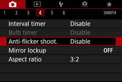 6. Turn the ⋖⋗ dial to select [Anti-flicker shoot.], then press ⋖