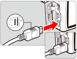 Insert the plug with its ⋖ HDMI MINI ⋗ logo facing the front of the camera.