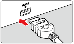 1. Connect the HDMI cable to the camera's ⋖HDMI OUT⋗ terminal.