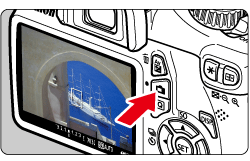 9. To shoot still photos, press the ⋖ ⋗ (Live View shooting/Movie shooting) button, or to shoot movies, press the ⋖MENU⋗ button, and then close the menu window. An image will appear on the LCD monitor.