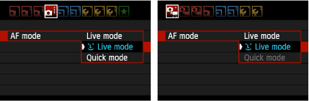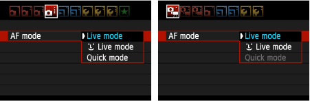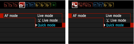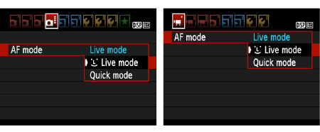 The image sensor is used to focus. Although AF is possible with the Live View image displayed, the AF operation will take longer than with Quick mode. Also, achieving focus may be more difficult than with Quick mode.