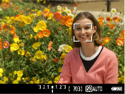 12. Press the shutter button halfway and the camera will focus the face covered by the [ ] frame.