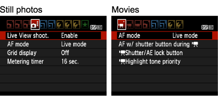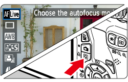 This page describes how to change the focus mode for Live View shooting. For details on how to perform easy Live View shooting in default settings, please refer to the related information.
