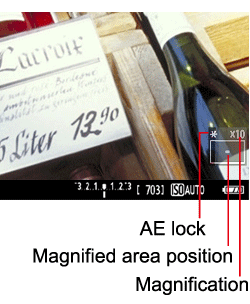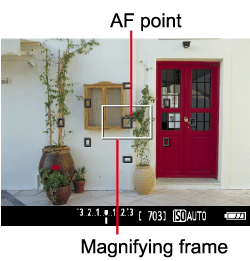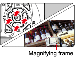 6. Press the ⋖Cross Keys⋗ to move the magnifying frame to the position where you want to focus.