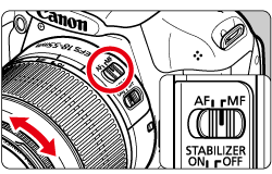 3. Set the lens focus mode switch to ⋖AF⋗.