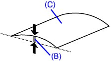 Depending on the media type, the paper may be smudged or may not be fed properly even if it is not curled inward. In such cases, follow the procedure described below to curl the paper outward within 0.1 inch / 3 mm (B) in height before printing. This may improve the print result.