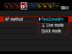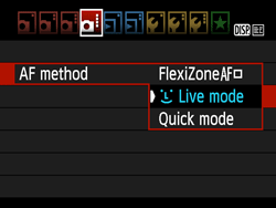 With [FlexiZone - Single], the image sensor is used to focus. Although AF is possible with the Live View image displayed, the AF operation will take longer than with [Quick mode].