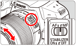 3. Set the lens's focus mode switch to ⋖AF⋗.