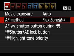 7. Select the AF method item, then press ⋖ ⋗.
