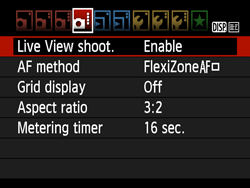9. Press the ⋖ ⋗ (Live View shooting/Movie shooting) button when shooting still photos, or the ⋖MENU⋗ button when shooting movies, to exit the menu. The Live View image will appear on the LCD monitor.