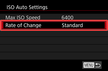 Also, with [ISO AUTO] selected, you can set the maximum ISO speed, or select the rate of change.
