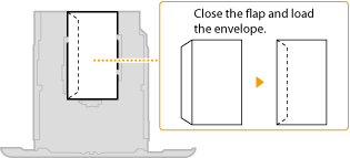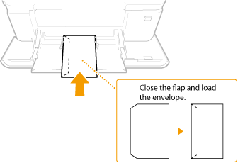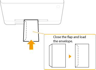 Load the envelopes Monarch, COM10, DL, or ISO-C5 in portrait orientation (with the short edge toward the machine), with the non-glued side (front side) face up. You cannot print on the reverse side of envelopes.