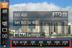 Press the ⋖FUNC./SET⋗ button (), and then press the ⋖directional button⋗ to the left or right to select the desired [ISO speed]. After making the selection, press the ⋖FUNC./SET⋗ button (