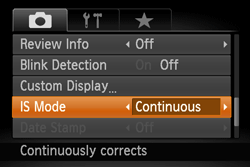 When the [Shooting mode] is in ⋖AUTO⋗ () mode, the [IS mode] will automatically be set to [Continuous].