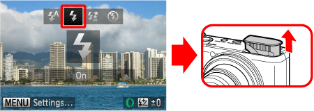 Press the ⋖flash⋗ button (to the right of the ⋖directional button⋗) several times to set to [On] ().