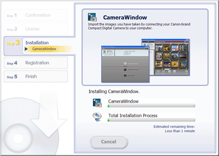 Although a CD-ROM is not included with the camera, installers for software applications can be downloaded from the Canon website.