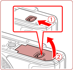 in the direction of the arrow and insert the battery pack until the lock clicks shut.