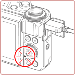 Charging stops and the indicator goes off if, after you begin charging as described above, you press the power button to turn the camera off.