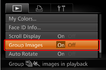 ⋗ buttons or turn the ⋖Control dial⋗ to choose [Group Playback] (
