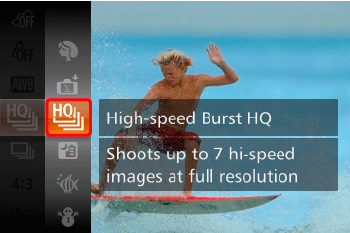 ⋗ buttons or turn the ⋖Control dial⋗ to choose [High-speed Burst HQ] (