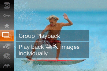 When playing back images, images taken in [High-speed Burst HQ]()mode are displayed in a group with only the first image displayed, however, grouped images can also be viewed individually.