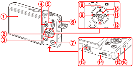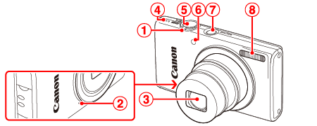 | Zoom lever Shooting: < Playback: < | Shutter button | ||