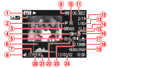 | Digital zoom magnification, Digital tele-converter | IS mode icon | ||