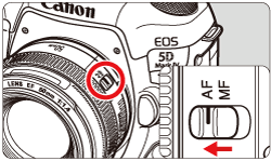 2.Set the lens focus mode switch to ⋖AF⋗.