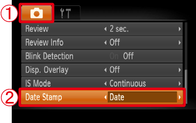 Operate the ⋖directional buttons⋗ to set [Date Stamp] to [Date] or [Date & Time].