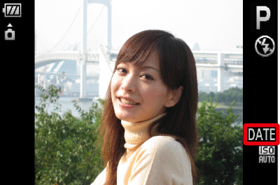 4. If you set [Date Stamp], [DATE] will appear on the LCD monitor.