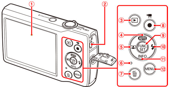 | Shutter button | Memory card/battery cover | ||