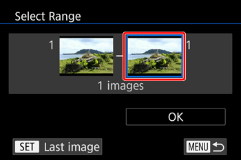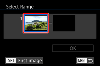 5B-1. Once you choose [ Select Range ] in step 4, the [ First image ] screen is displayed.