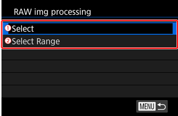 ] button and choose [ RAW img Processing ], then press [