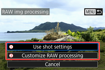 6. Press the [ MENU ] button to go to the setting screen and process RAW images.