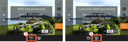 : If you choose [ Customize RAW processing ], refer to steps 5~9 in [From Playback Mode ].