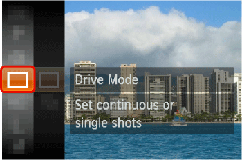 Operate the ⋖directional buttons⋗ up or down to select the [Drive Mode] ().