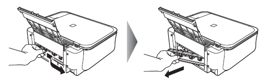 1.Slowly pull the paper out, either from the Rear Tray or from the Paper Output Slot, whichever is easier.