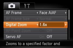 ) set the [Digital Zoom] to either [1.6x] or [2.0x].
