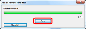 Depending on the type, current state, etc. of software running on your computer, the download of the lens data may fail. If it occurs, wait for a while then try downloading the data again.