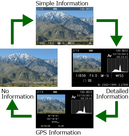 If the on-screen information is displayed during playback, press the ⋖DISP.⋗ button to switch the display mode until it is hidden.